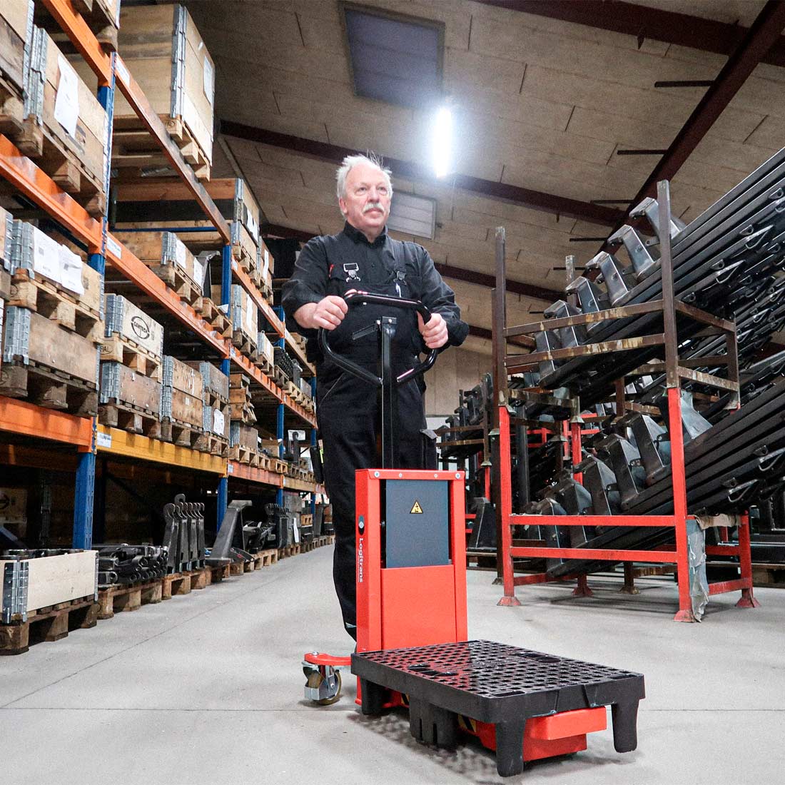 The quarter pallet lifter LogiQ 300, with the capacity of 300 kg, is an indispensable partner, for you, who have to transport quarter pallets in e.g. supermarkets, storage and packing areas, and gas stations. Quarter pallets are perfect for display pallets, and LogiQ 300 is designed for lifting and moving quarter pallets to/from an EUR pallet and moving them to the requested location in the shop.