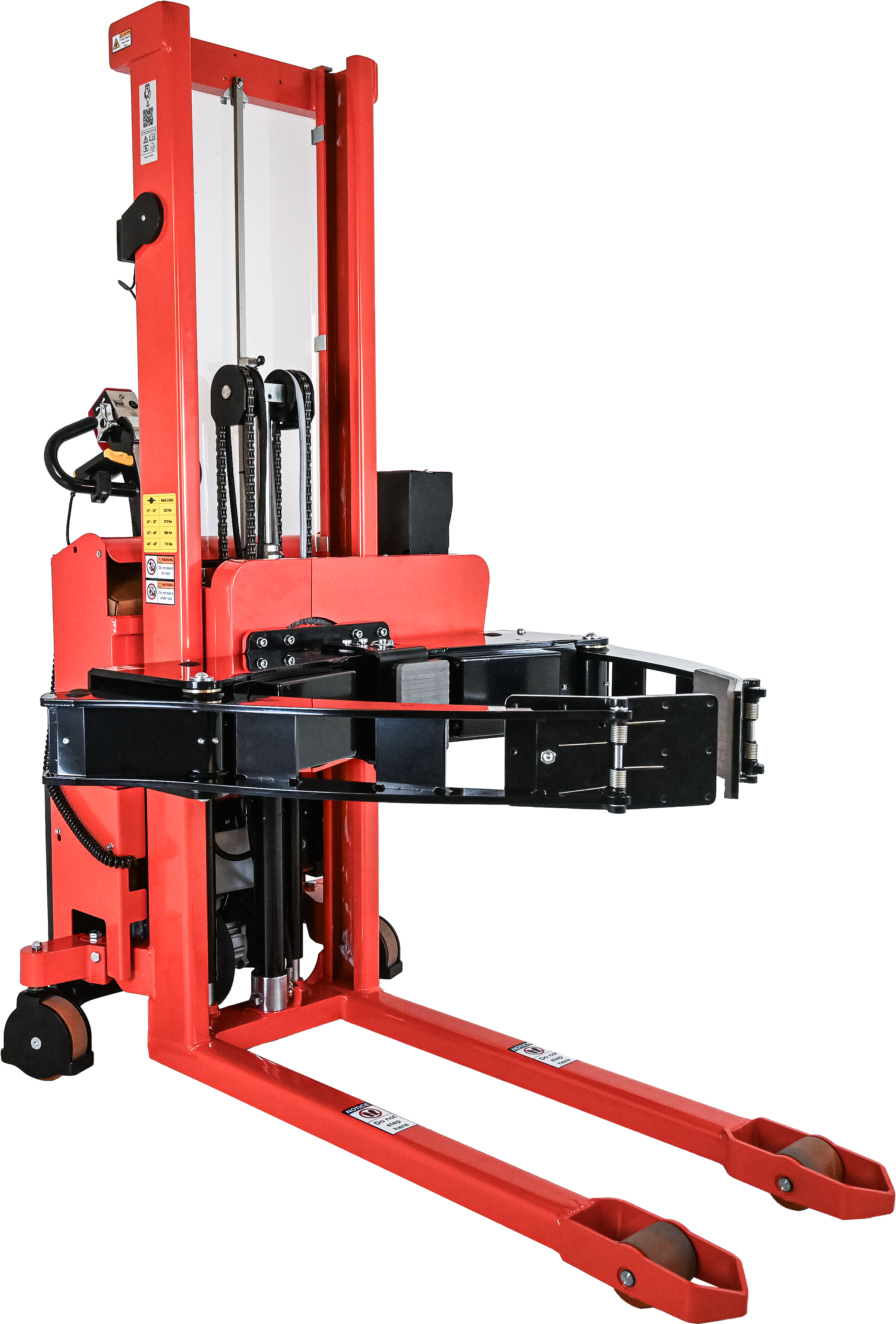 - On models with electric rotation, it is only possible to rotate at lifting heights above 32.5”, so the gripping arms will not collide with the floor or legs.
